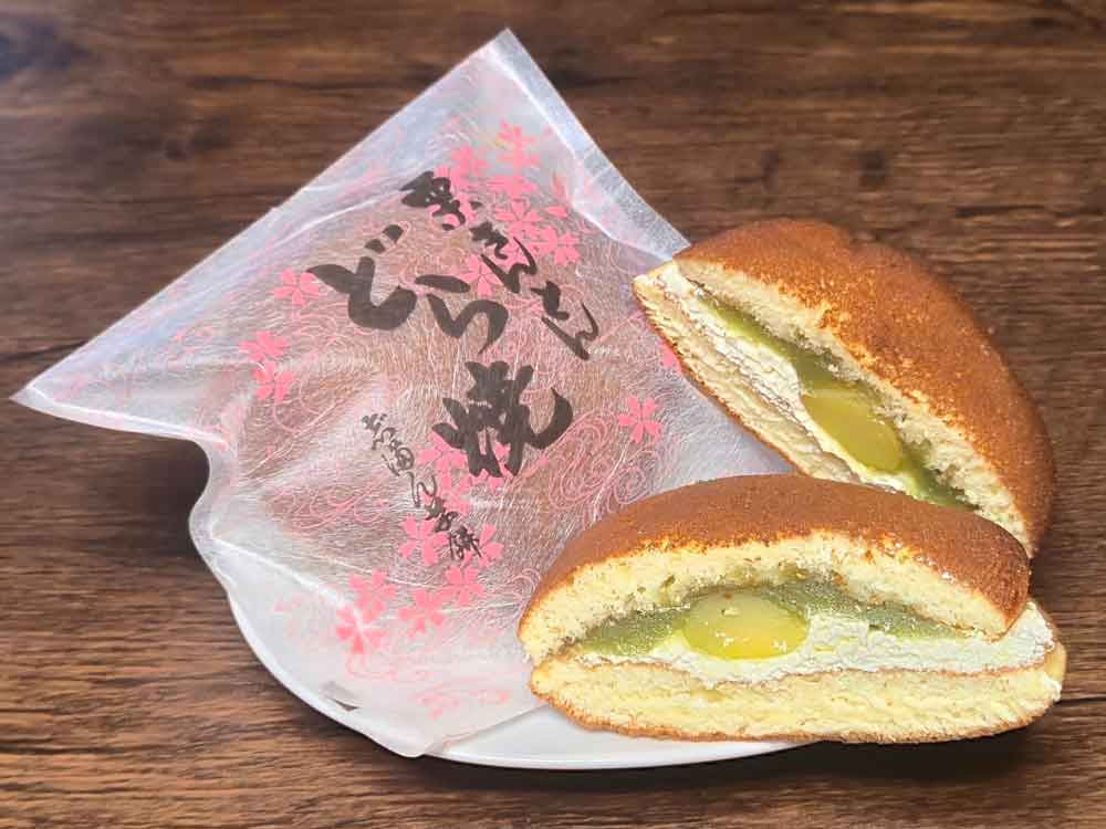 通期販売の定番品で、ふんわり甘めの生地に大粒の栗と栗きんとん、そして生クリームをサンド。洋風どら焼きのような華やかさもありながら、後味は上品。渋めの煎茶やコーヒーにもよく合います。