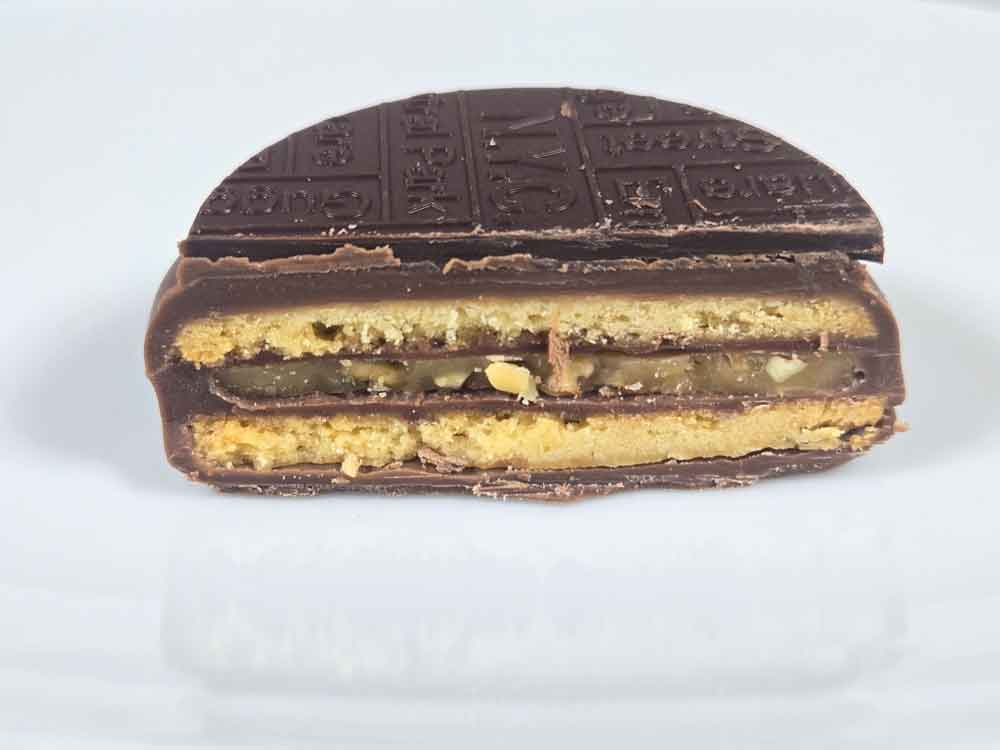 厚めのチョコレートにサクッとしたクッキーと濃厚キャラメルが挟まれた人気の定番。