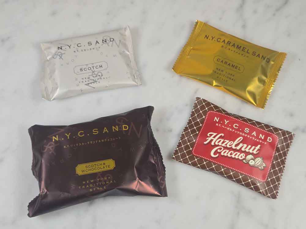 中身は、キャラメルサンド・スカッチサンド・リッチスカッチサンド、そして新作のヘーゼルナッツカカオキャラメルサンドとバランスの取れた内容。