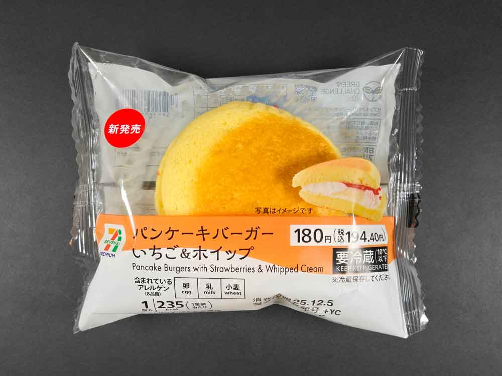 「パンケーキバーガー いちご&ホイップ」|このボリュームで180円は破格すぎる!