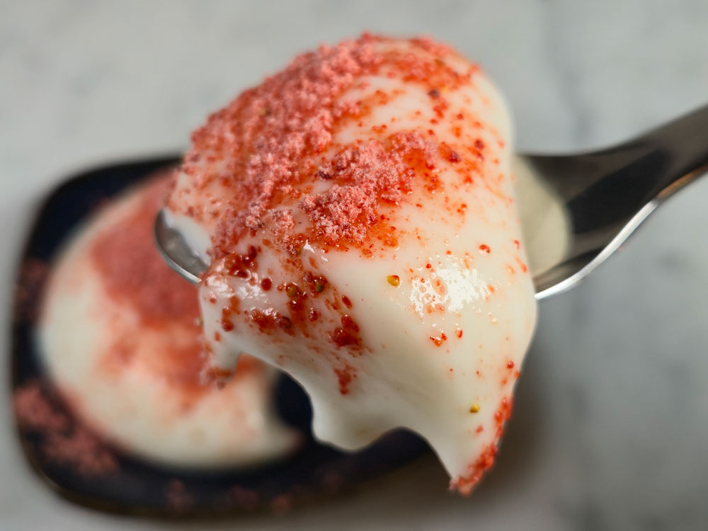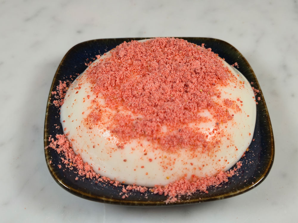 いちごパウダーをふりかけると…
